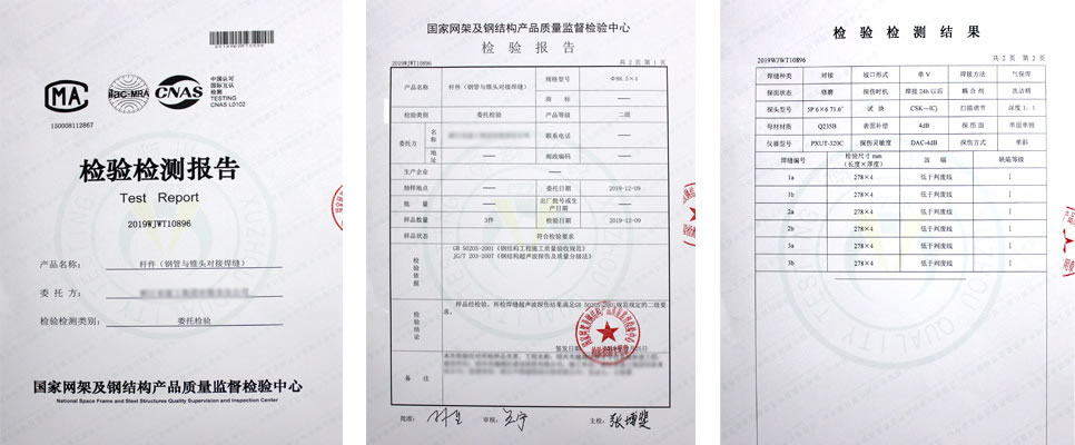 材料進場要附帶材料的出廠合格證,沒有出廠合格證明的材料嚴禁進出廠區,材料進場后要對材料進行現場檢測其規格是否符合設計要求,并對主要受力桿件的幾何尺寸、壁厚等進行抽檢,此過程需要監理進行現場見證,檢驗合格后方可進行加工使用。